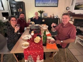 I flew into CGD on a Monday and took the TGV ( right from the airport ) to the La Rochelle train station where she was waiting for me. It took about a 1/2 hour to drive to the apartment complex where I stayed for the week in the studio. In the studio, we had breakfast each day, then a few hours of lessons, and then we either went out to lunch or eent to see one of the sights. The large lighthouse was pretty neat and I climbed up to the top. Excellent view of the island and well worth it. Make sure you order the oysters when you go out to lunch…best I have ever had! In the afternoons I was generally free to take a nap and walk around the town. Saint Martin is a cool little town, very walkable. As you might have read, this town was built inside the large fort that dates from 1700 or so. Very pretty to walk around and see the bay. I took a promenade a few times per day, it helped keep the wine off :-). For dinner I generally was lazy and went to the local carefour market and bought some food to cook in the studio. But there are a few restaurants open even in late November it you wanted to do that. I had two dinners with Clarisse and family..the last night was really special as we had une raclette and after dinner Claude and I played guitars and drank cognac…really memorable.